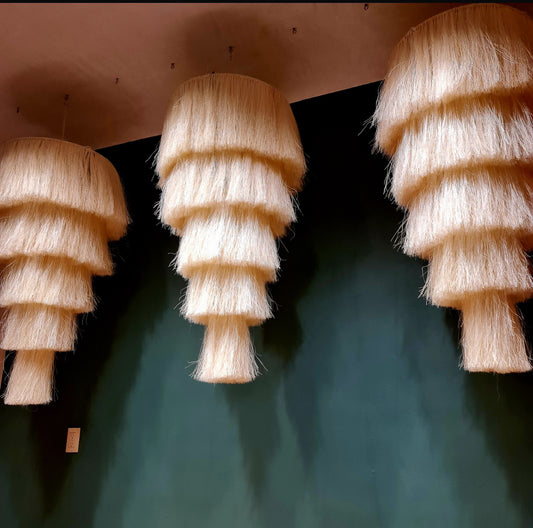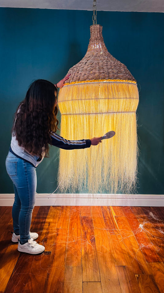 La textura del henequén, su conexión con la tierra y su esencia artesanal convierten cada lámpara en una obra de arte que honra la naturaleza y la cultura mexicana.