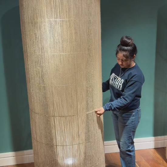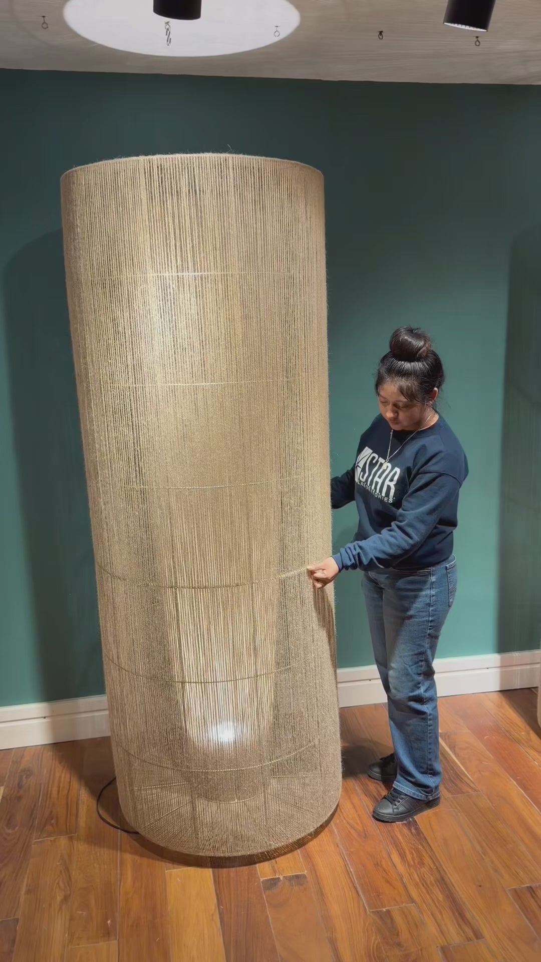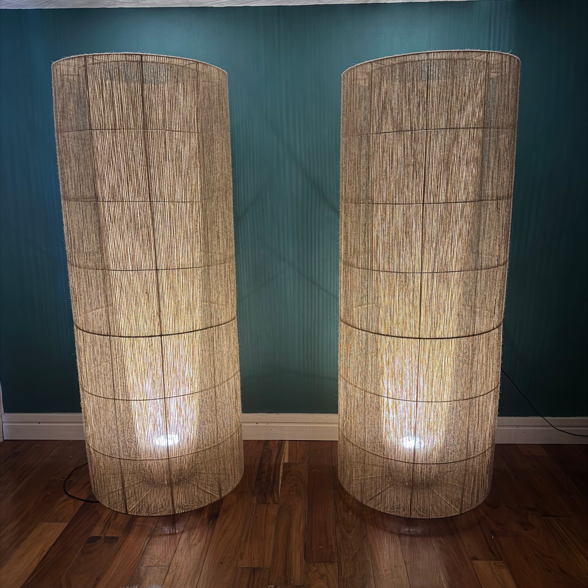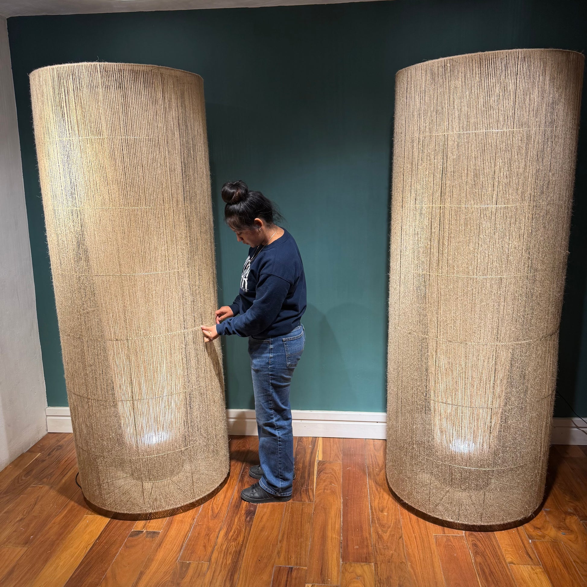 Con una altura imponente de 210 cm y un diámetro de 70 cm, esta lámpara de piso combina presencia y delicadeza en un equilibrio perfecto. Su estructura con acabado electroestático aporta solidez y limpieza visual, mientras que el yute tejido a mano ofrece textura, calidez y un carácter natural que enriquece cualquier ambiente.