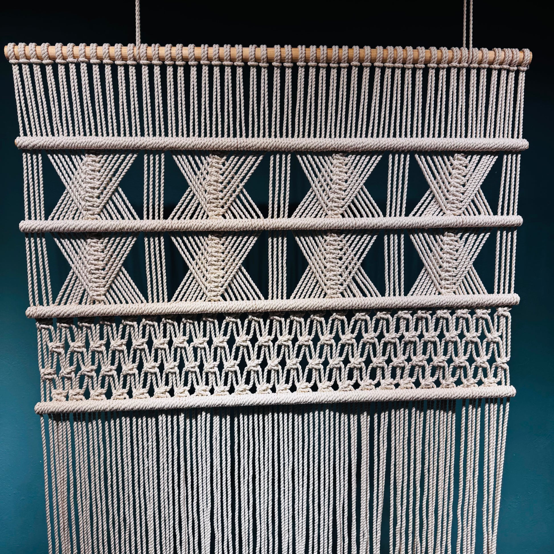 Nuestra pieza “Vida” ha sido elaborada completamente a mano por talentosos artesanos en la Ciudad de México, utilizando técnicas tradicionales de macramé que celebran el arte, la paciencia y la dedicación. Cada nudo está cuidadosamente tejido para crear un diseño armónico que transmite elegancia, calidez y sofisticación.